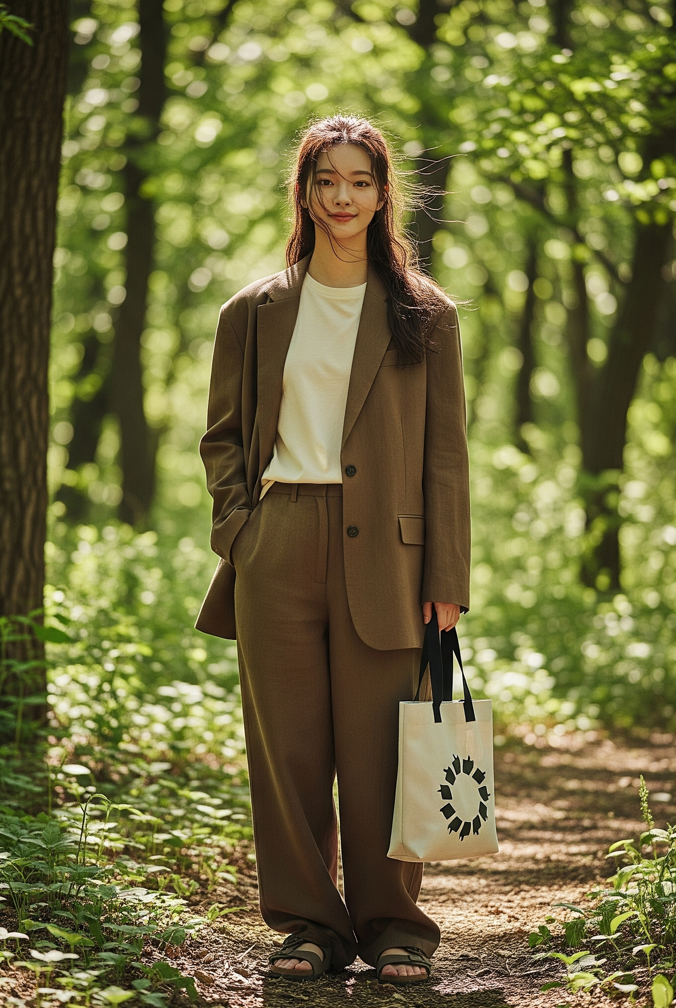 해외 패션 컬렉션에서는 이미 이러한 흐름을 읽을 수 있었습니다. 자연에서 영감을 받은 어스 톤(Earth Tone) 컬러 팔레트와 유기적인 실루엣이 눈에 띄었죠. 예를 들어, <사진> 디자이너 아미 린(Amy Lin)의 2025 S/S 컬렉션에서는 자연을 연상시키는 뉴트럴 톤의 린넨 수트와 재생 폴리에스터 소재의 흐르는 듯한 드레스가 다수 등장했습니다. 패션 잡지 화보에서도 숲속이나 사막 같은 자연 배경에서 지속 가능한 의류를 착용한 모델들의 모습이 자주 포착되어, 자연과의 조화를 강조하는 메시지를 전달하고 있습니다.